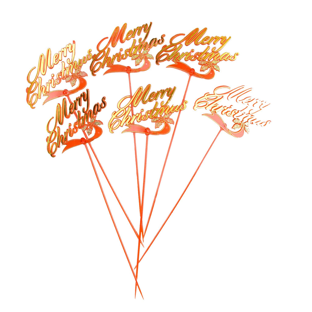 Merry Christmas Party Pick Topper, 12-Inch, 12-Count - Red/Gold