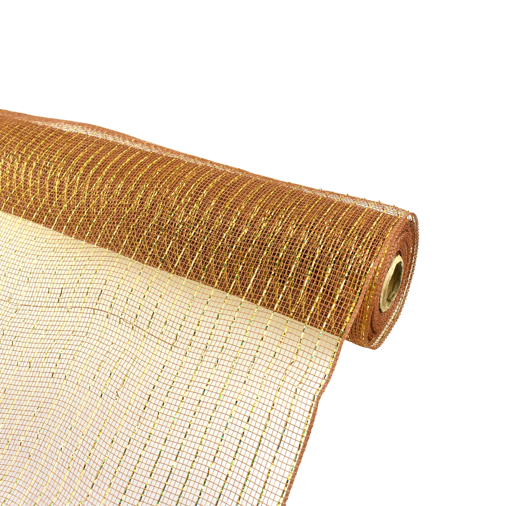 Make your floral arrangements stand out with this beautiful mesh roll! Sporting shiny metallic colors, this decorative mesh roll can be wrapped around bouquets, worked onto arrangements, or be used to serve party decorations! Easy to cut to fit any design you want! Length: 10 yd Width: 21"