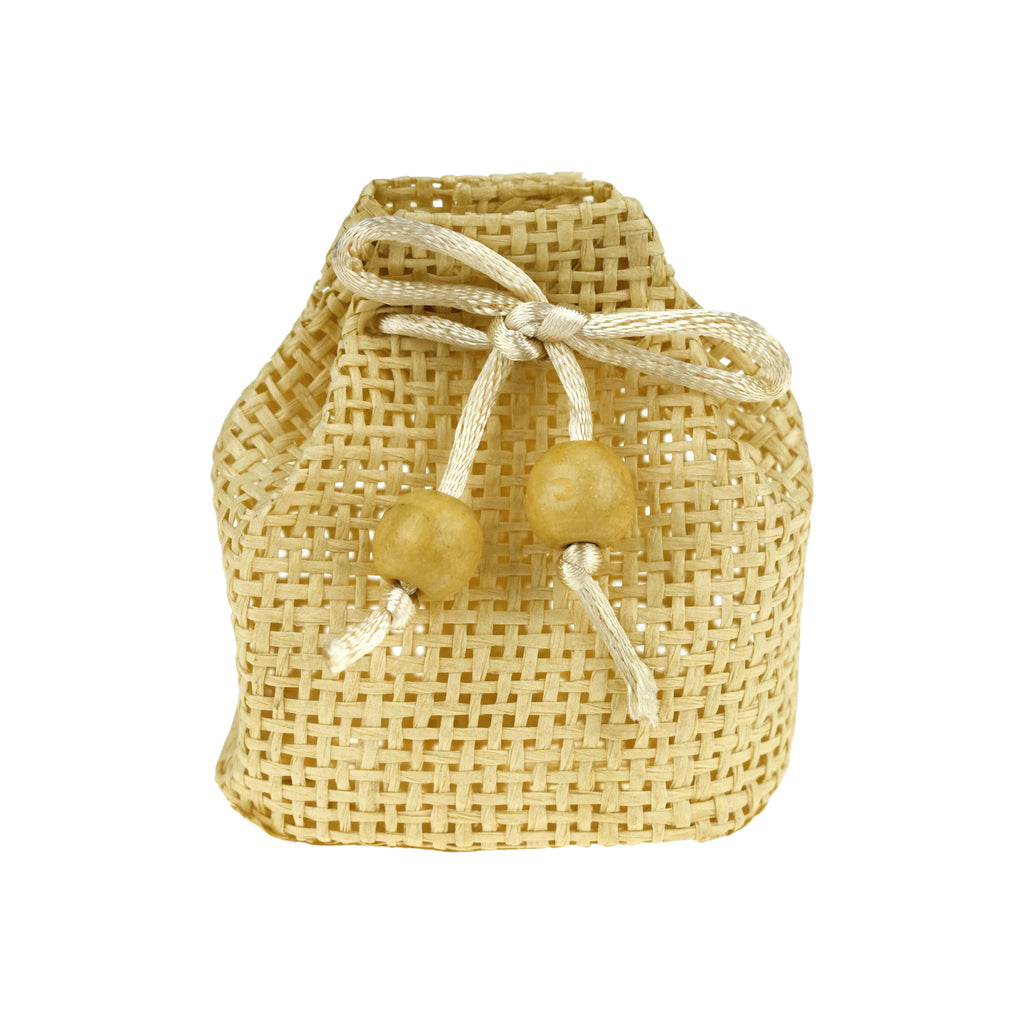 Who knew drawstring sacs could be this adorable? These mini natural woven rope drawstring sacs are both eco-friendly and fashionable. Use as favor bags for your garden-themed wedding or bridal shower. Each woven bag features a drawstring with wooden bead detail. For a personal touch, add a personalized ribbon or customized label (not included).