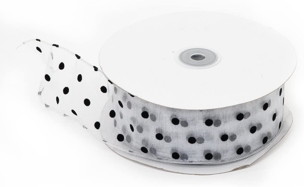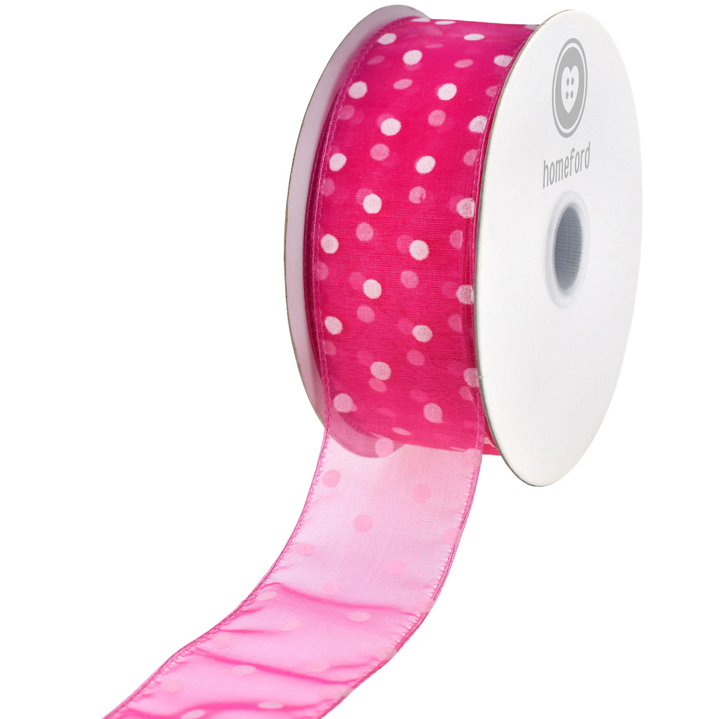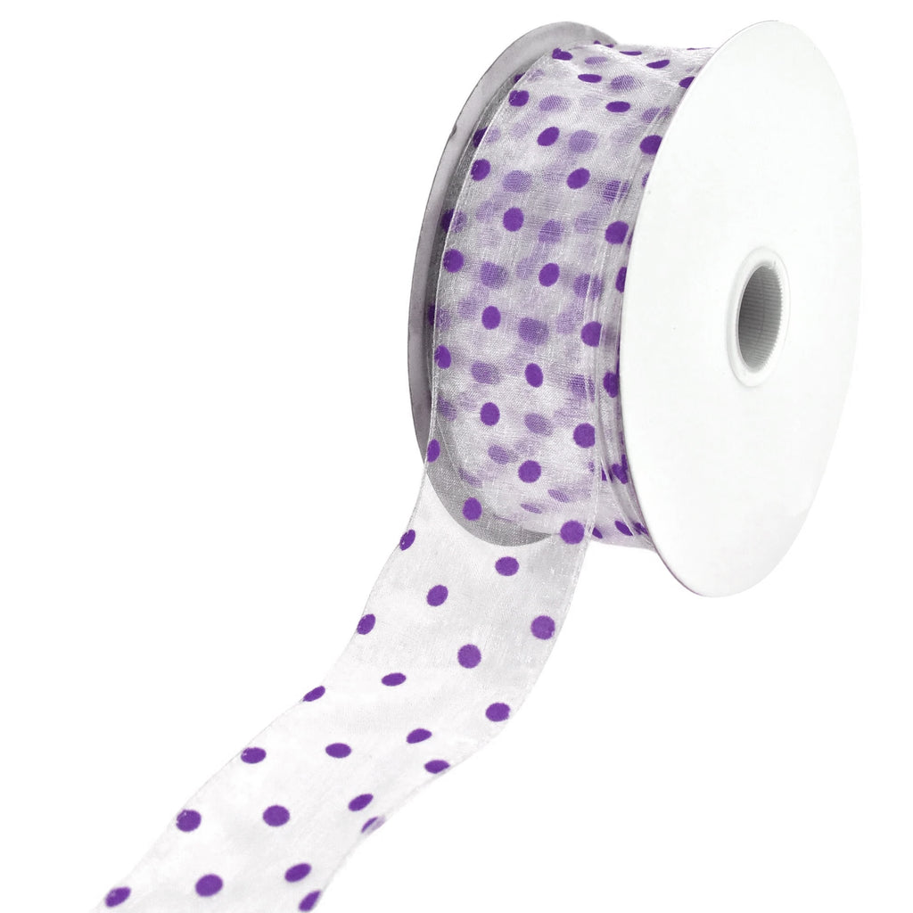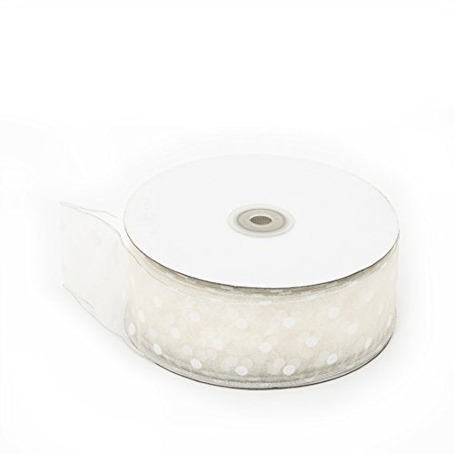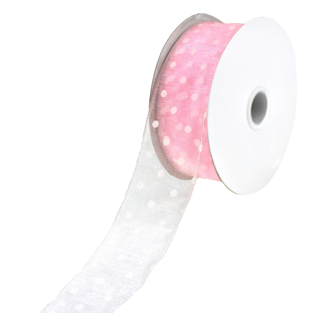 Organza Polka Dots Wired Ribbon, 2-Inch, 50-Yard