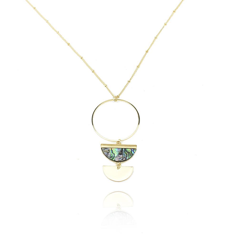 BEAUTIFUL PENDANT NECKLACE - This pendant necklace features a circle pendant with two semi circles, one with pearlescent design, which makes it look more unique and eye-catching.