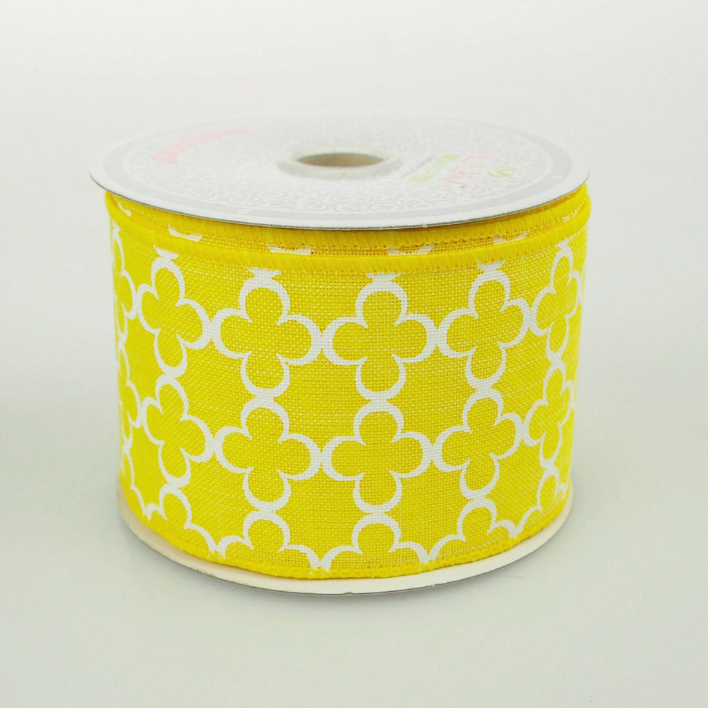 Beautiful natural canvas ribbon with quatre-foil spade print. Ideal for a natural look, fall or holiday gift packaging, home decor, craft project, bow making and much more.