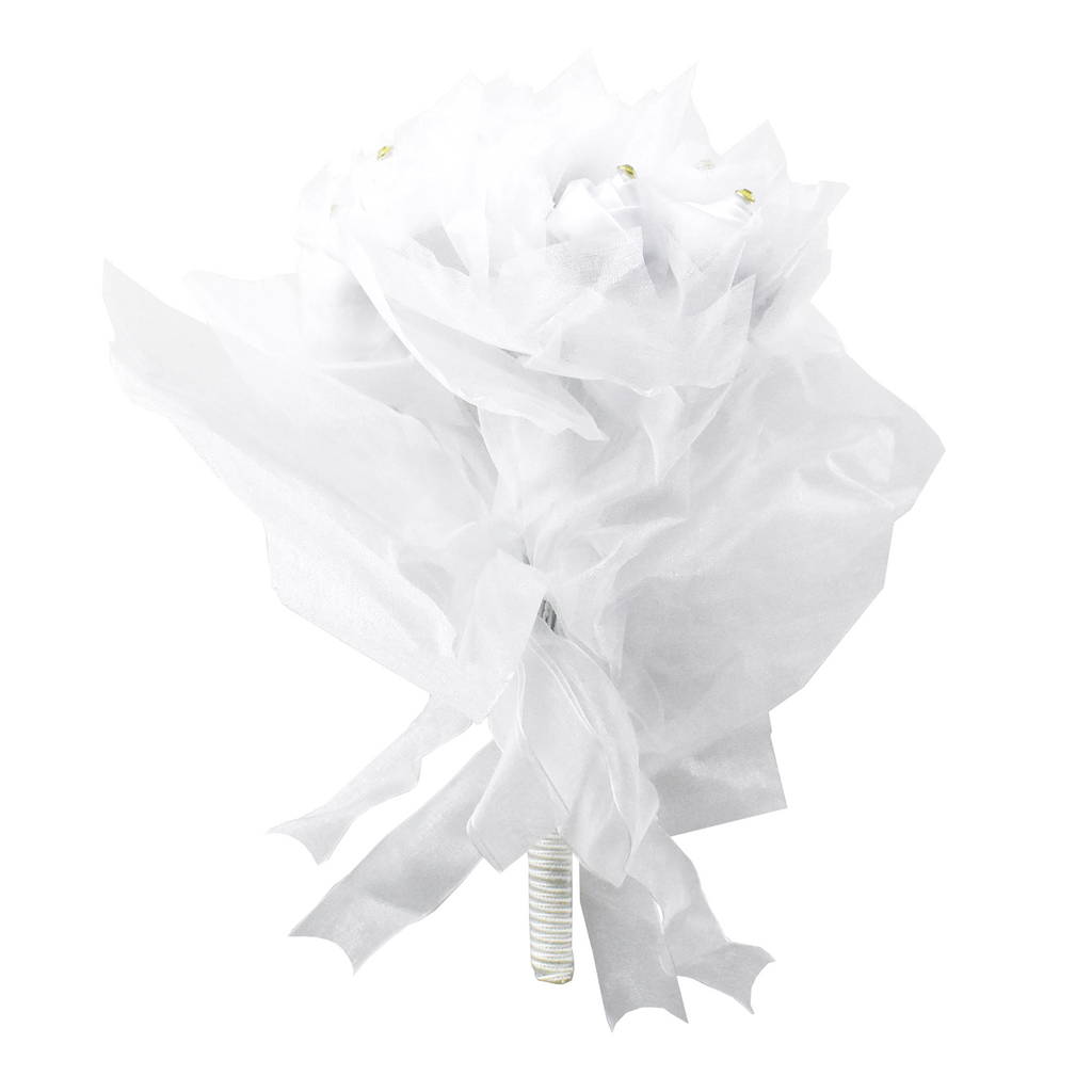 Make your special day even better with this lovely bouquet. The foam roses feature a rhinestone finish to add an elegant touch to your wedding look. Whether you're holding or catching it, this bouquet makes a lovely addition to any wedding. Length: 10" Width: 7"