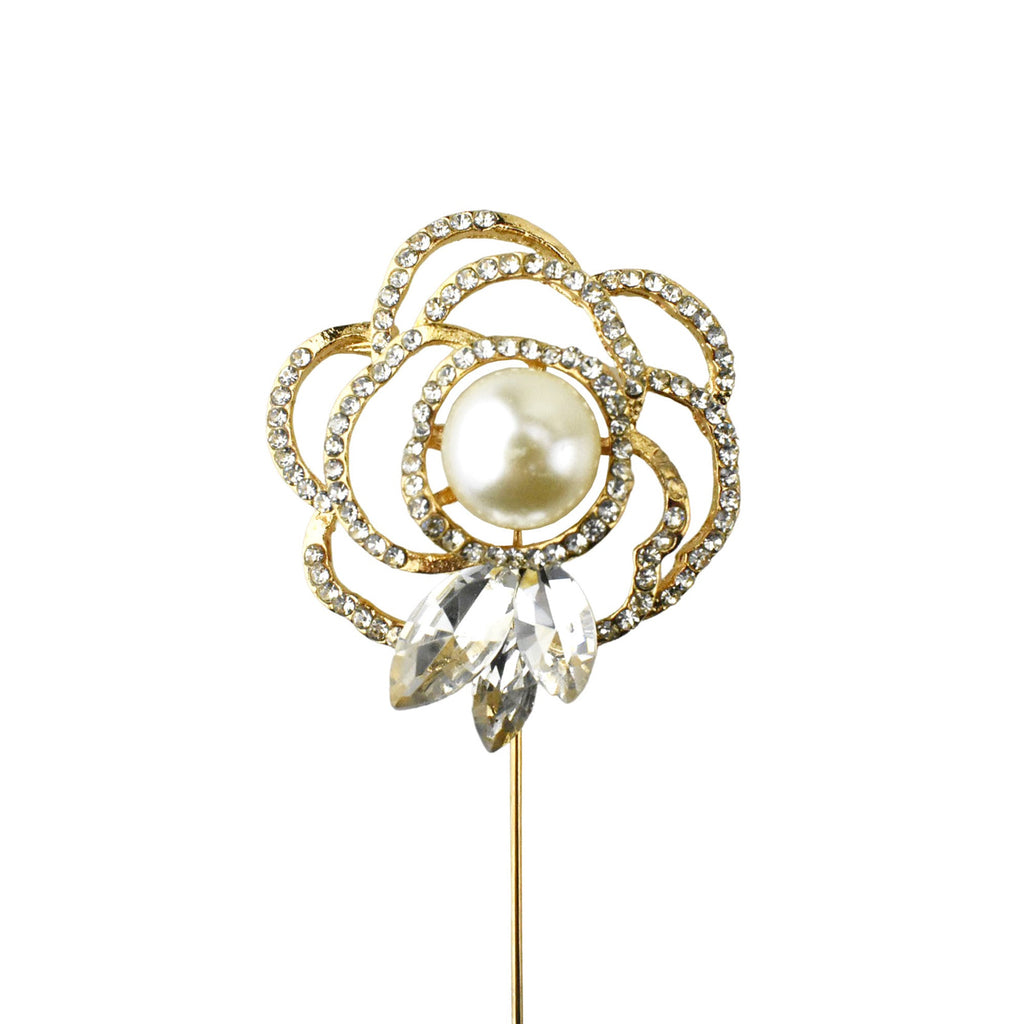 Rhinestone Pearl Rose Pins, 3-1/4-Inch, 3-Count - Gold