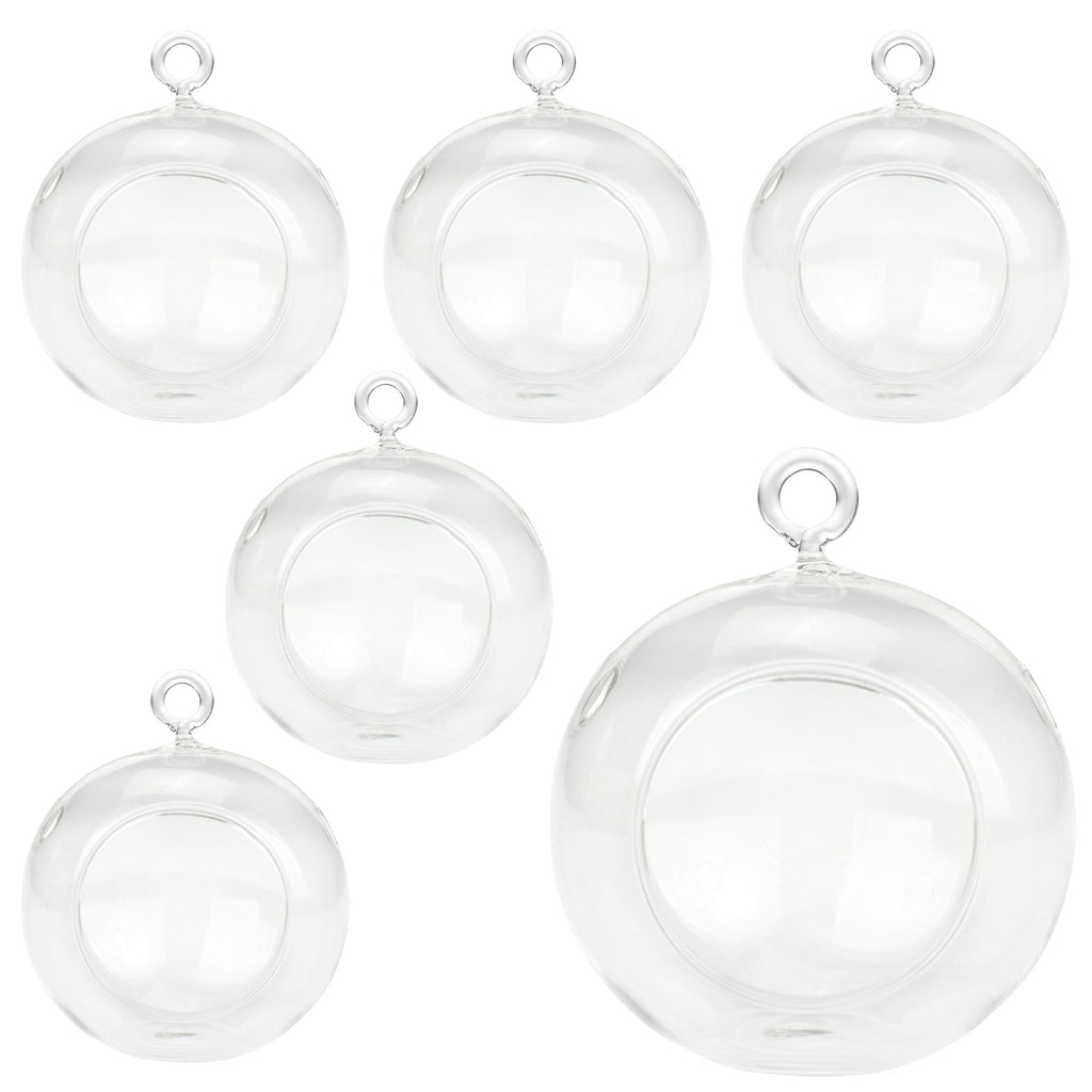 Create a stunning indoor garden with our Round Glass Hanging Terrarium! This beautiful glass orb is designed to showcase your favorite plants or decorative items with elegance and simplicity using its open front. The flat bottom allows you to display on your table while the hanging loop allows for effortless suspension from hooks or ceiling hangers.
