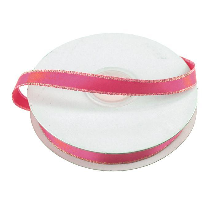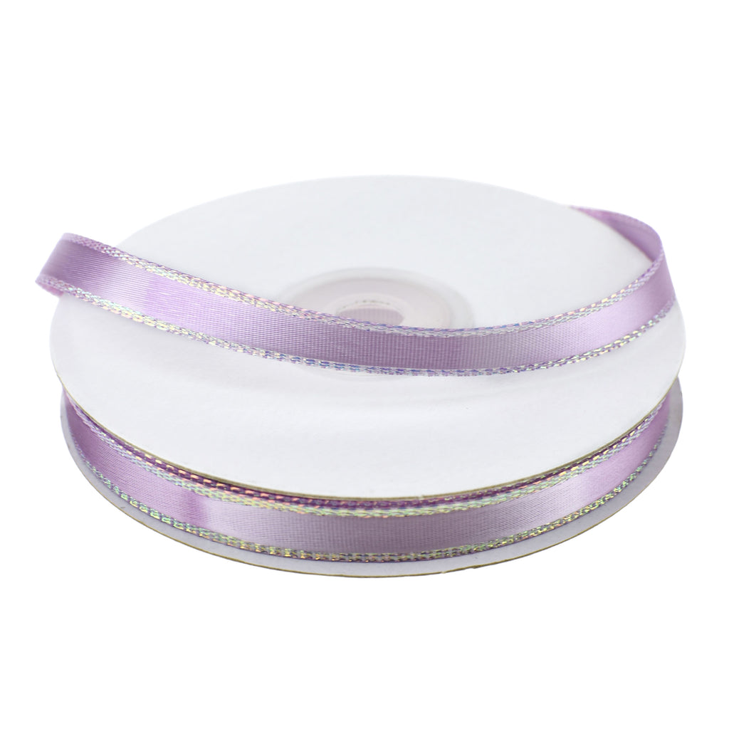 Single face satin ribbon with a sparkling iridescent metallic trim edge are perfect for gift wrapping and crafting.
