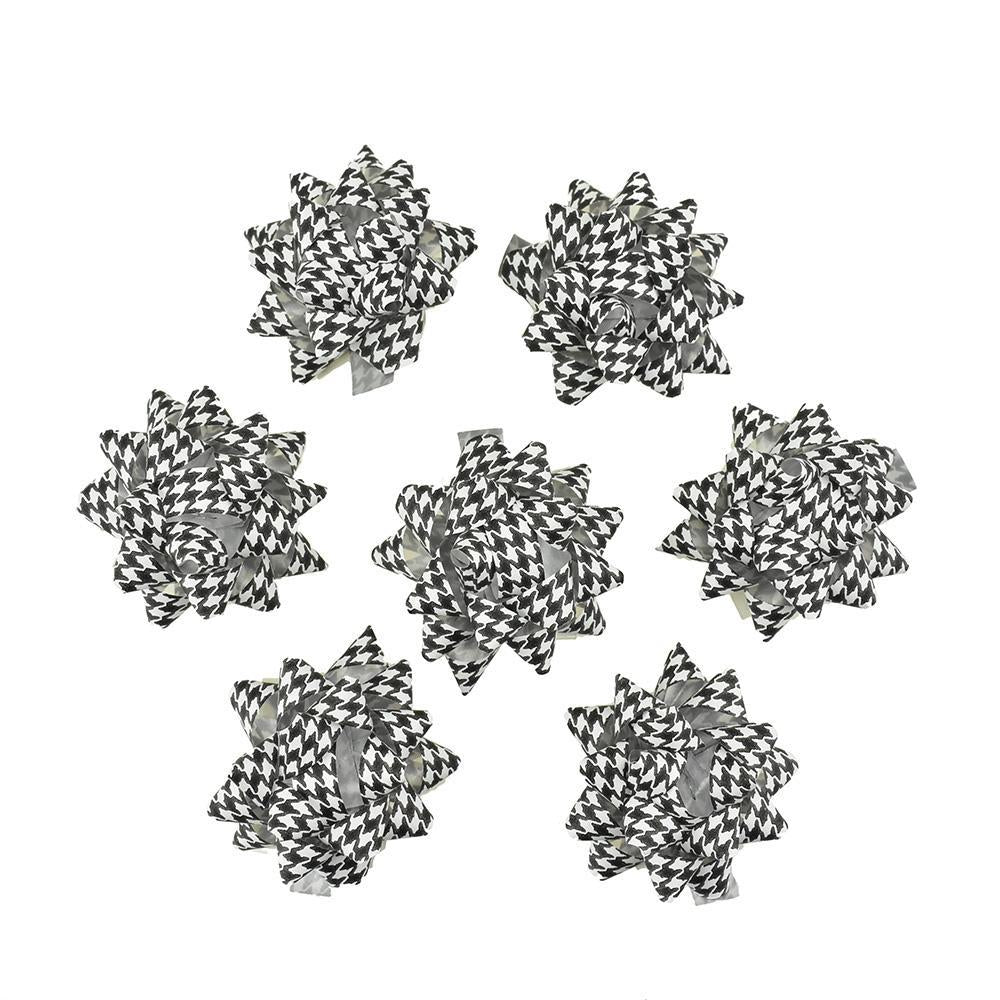 The lovely bright colors are suitable for many gift wrapping themes and the seasonal prints are great for the holiday season. The bows come pre-tied in a star shape with a strip of adhesive paper on the bottom to easily put on any surface.