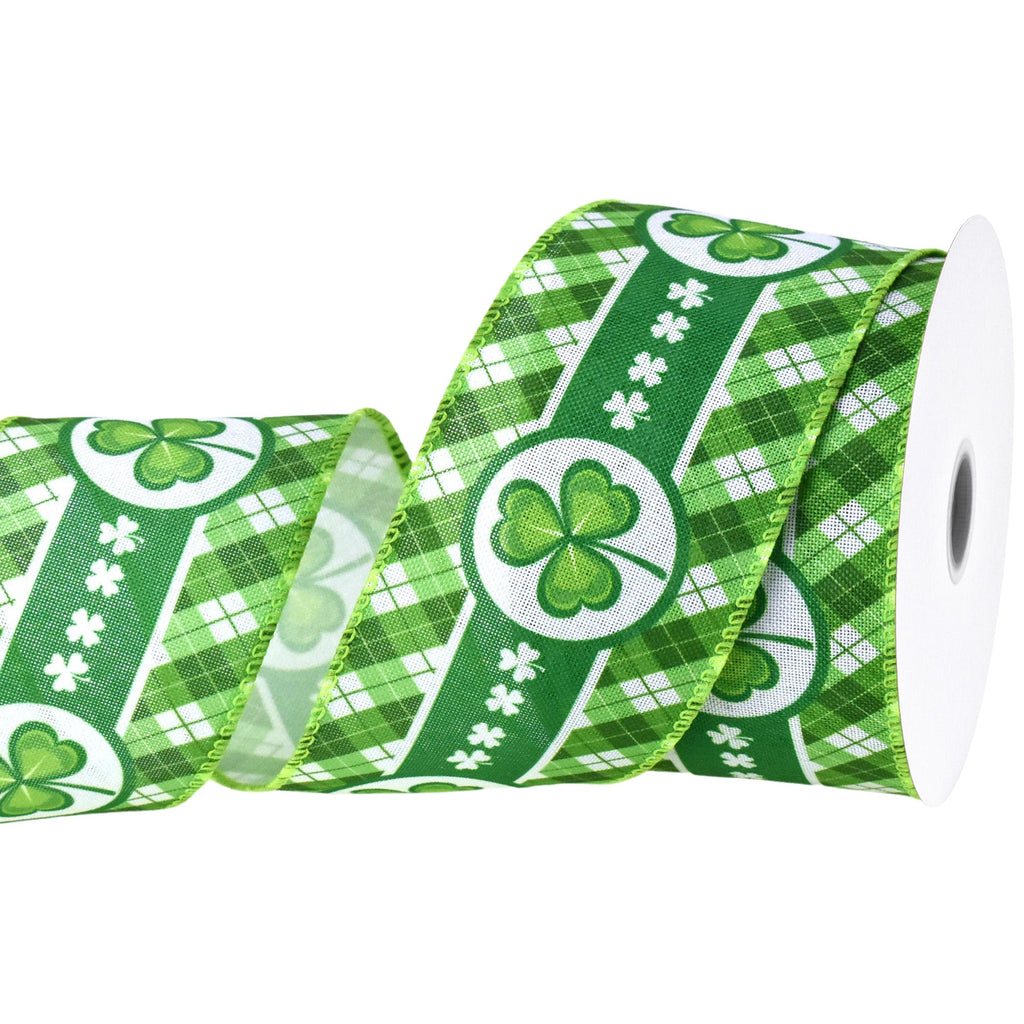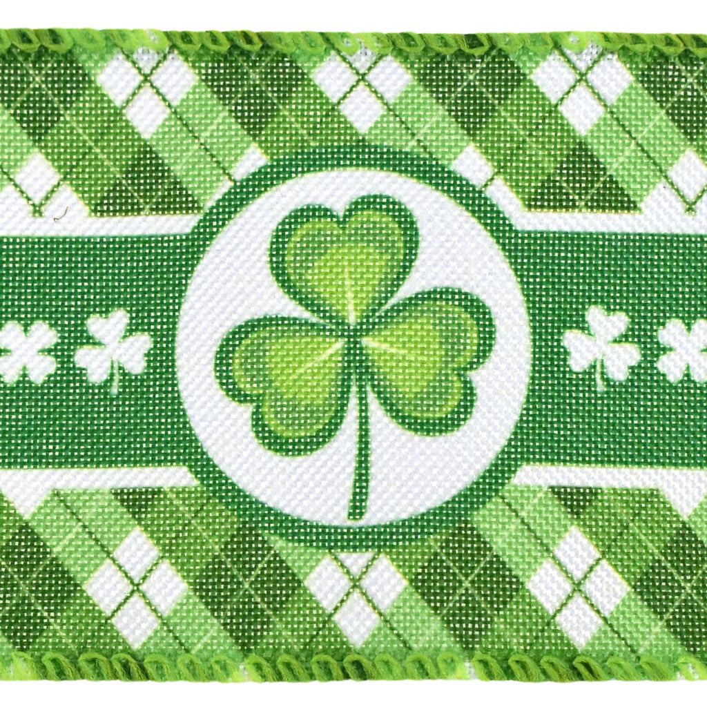 St. Patrick's Day Shamrock Plaid Wired Ribbon, 2-1/2-inch, 10-yard
