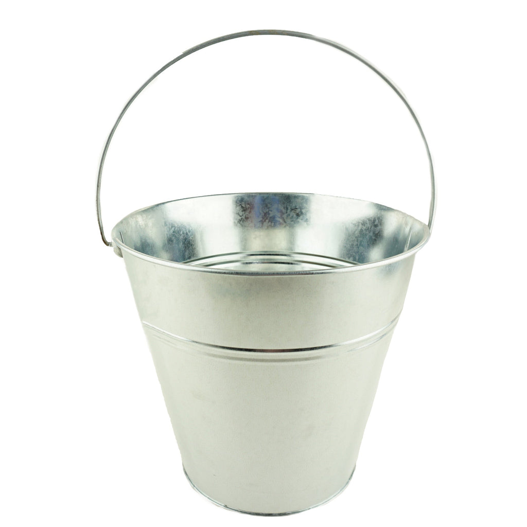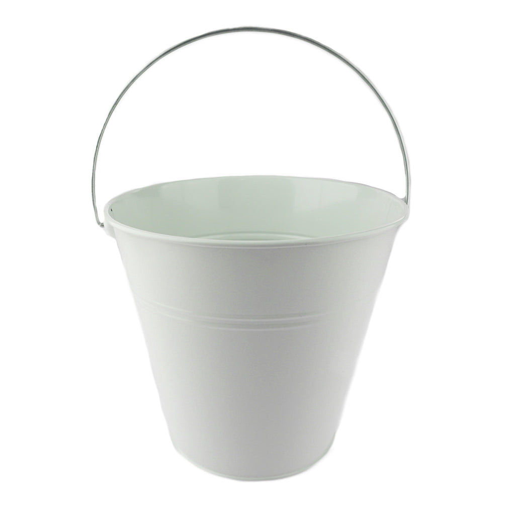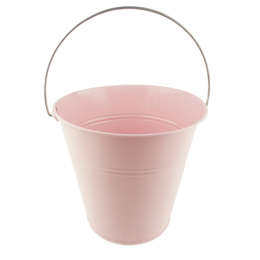 Create a multitude of party decorations or DIY projects with these tin pails with handles! These great pails will be amazing for arts and crafts, gift baskets, Easter egg buckets, holiday decorations and much more. This pail is also great for children and adults to use for activities such as gardening or creating floral arrangements. Features a silver handle and a tin pail bucket in 16 different colors. Height: 9" Height of bucket with handle raised: 14.5" Diameter of opening: 9.5" Diameter of bottom: 6.125"