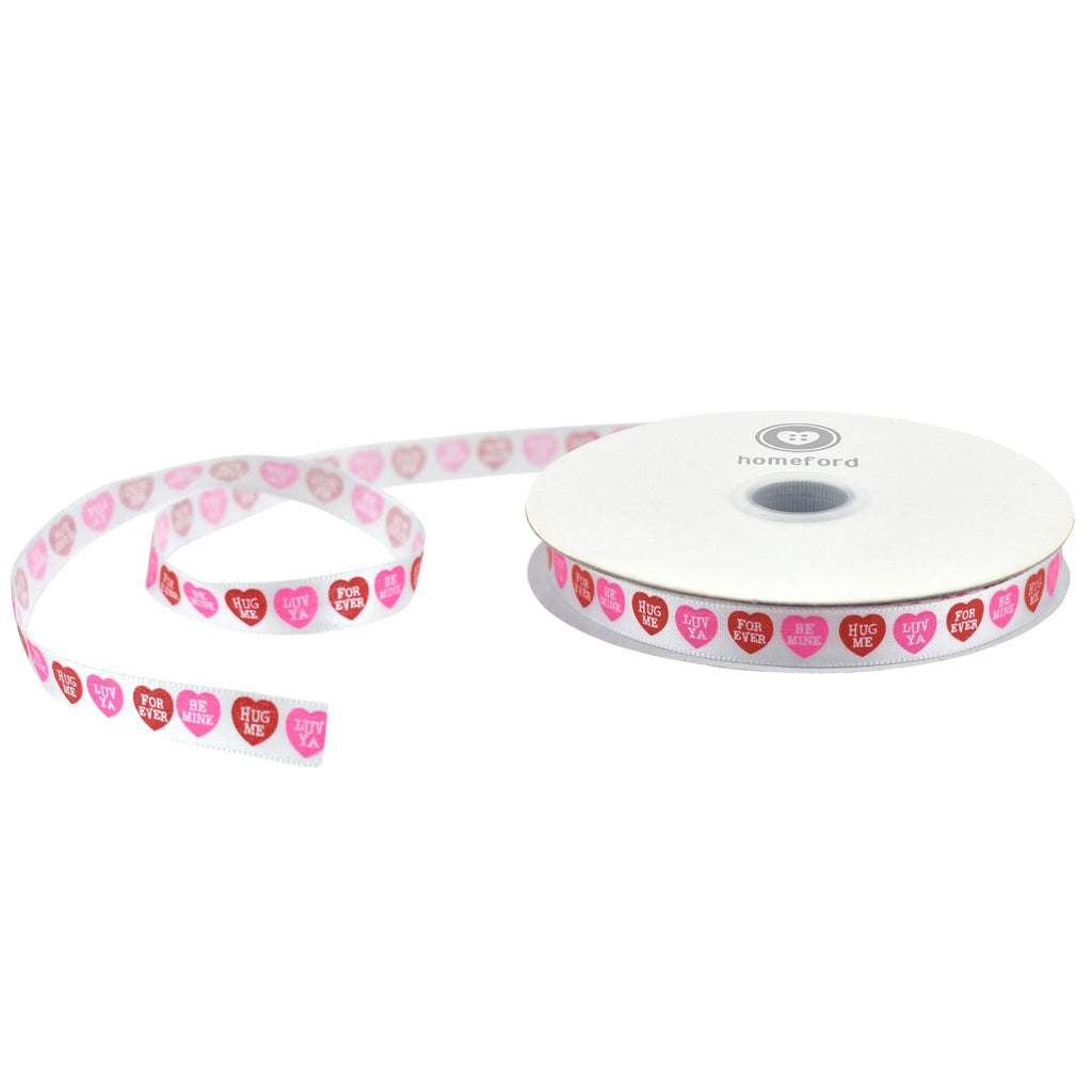 Valentine's Day Candy Hearts Satin Ribbon, 3/8-inch, 10-yard