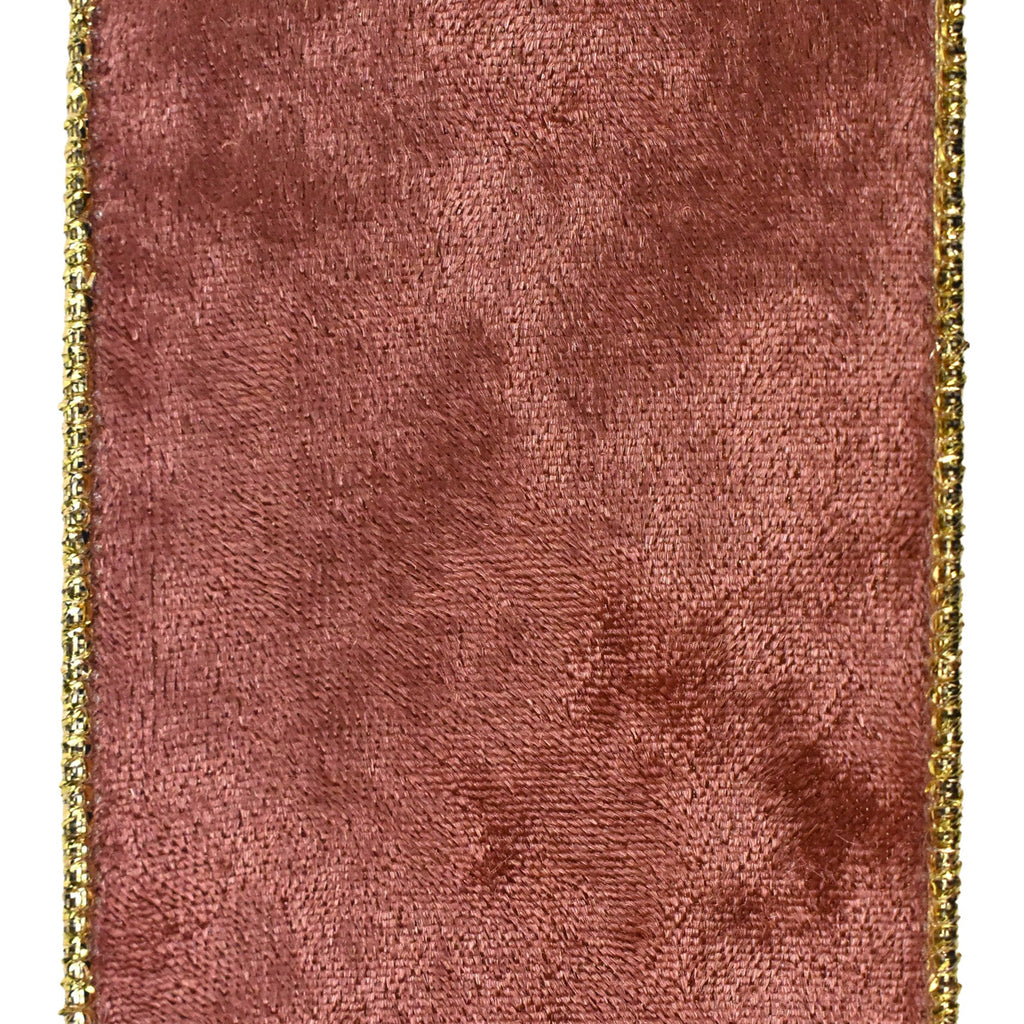 Add your own touch to any project! This ribbon features a double sided pattern of plush velvet in the front and shiny gold in the back for the perfect finishing touch to any home decor, DIY, or craft project you use these with. Take your decorating or DIY to the next level! Note: Contains wire Length: 10 yd Width: 2.5"