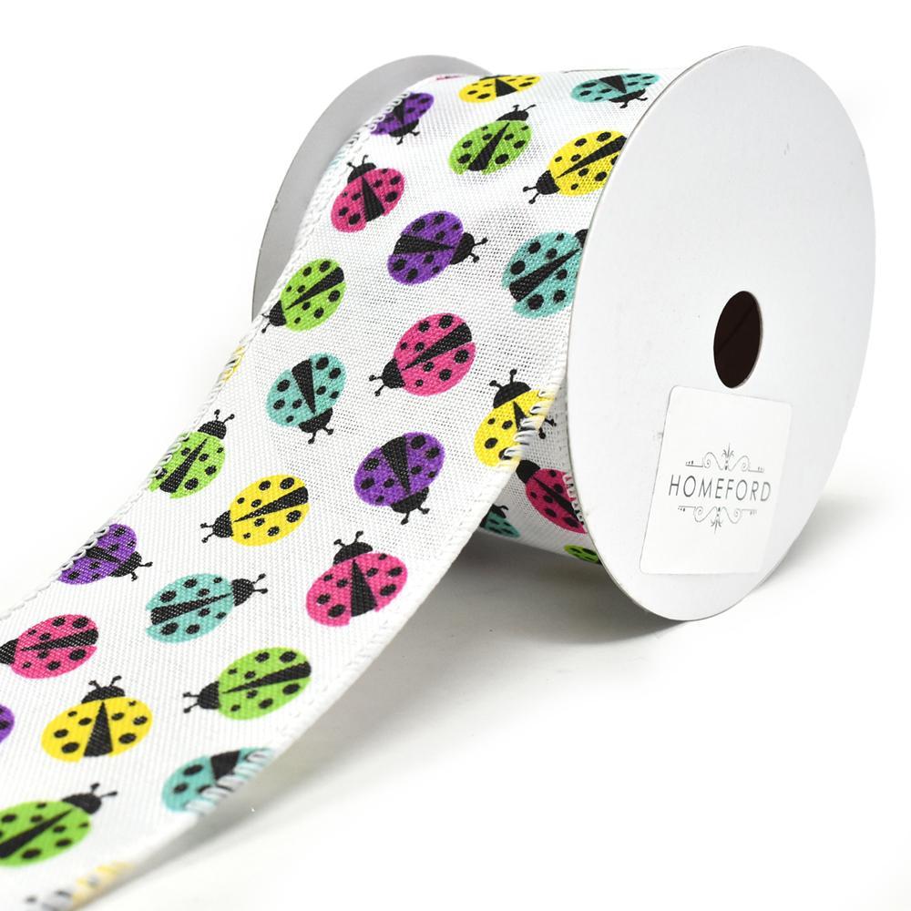 Vibrant Colored Lady Bugs Wired Linen Ribbon, 2-1/2-Inch, 10-Yard