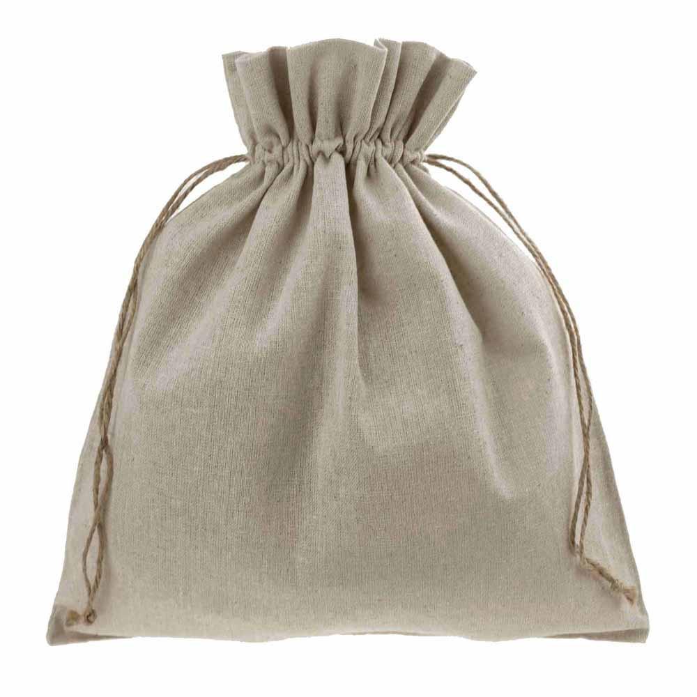 It is made of high quality pure linen natural fabric featuring a jute drawstrings to secure the contents.