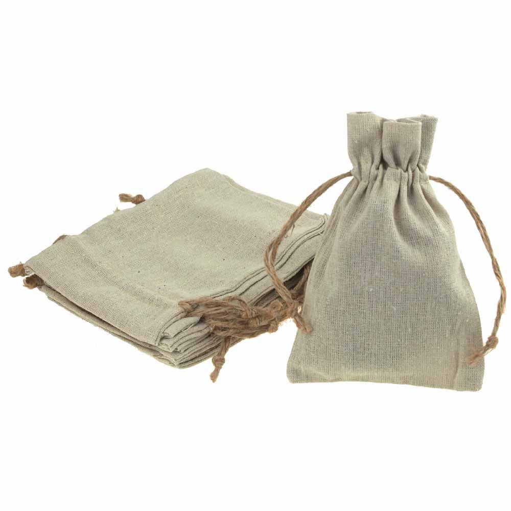 Natural Linen Favor Bags with Jute Drawstring, 12-Piece