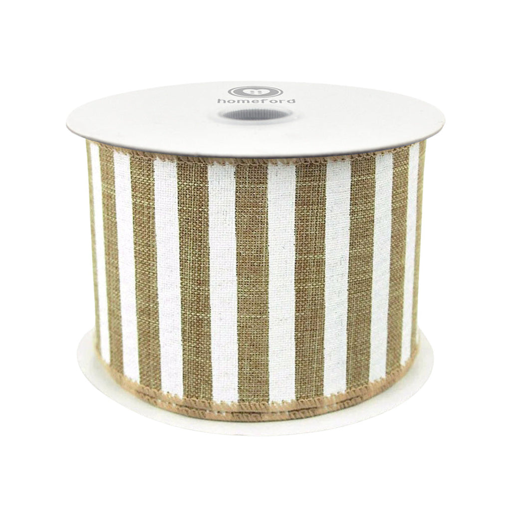 Beautiful natural canvas ribbon with white bold linesprint. Ideal for a natural look, fall or holiday gift packaging, home decor, craft project, bow making and much more.