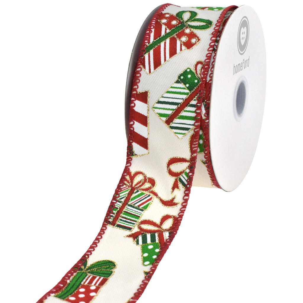 Wrapped Christmas Gifts Faux Linen Wired Ribbon, 1-1/2-inch, 10-yard